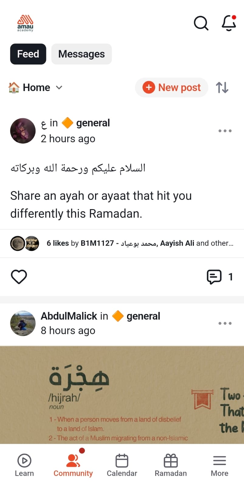 The AMAU Student Community allows students to learn together, share useful reminders, and support one another on their journey to seek knowledge.