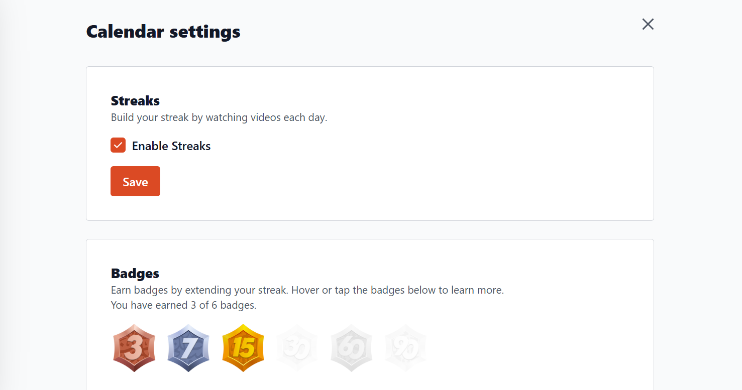 As you maintain your streak, you may earn badges that recognise your consistency.
