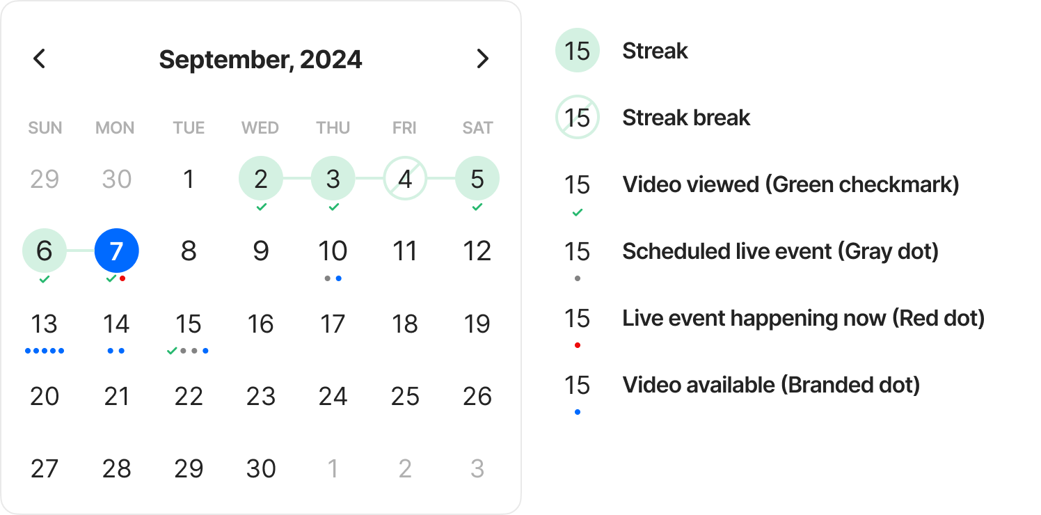 Even if a streak ends, your previous learning activity remains recorded in the calendar, and you can begin building a new streak at any time.