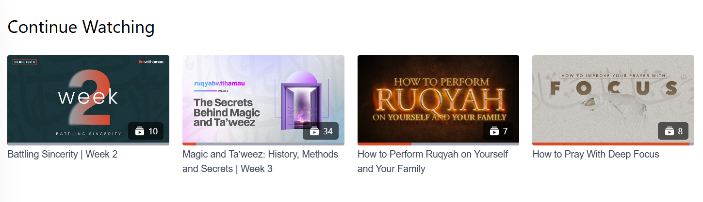 The Continue Watching feature helps you return to lessons that you have started but have not yet completed. It allows you to quickly resume your studies without needing to search for the lesson again.