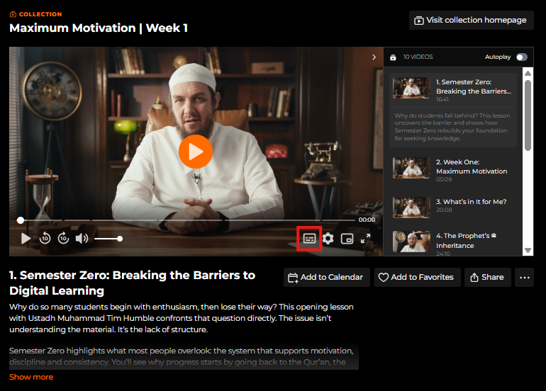 Web Player Click the Subtitles button at the bottom of the video player.